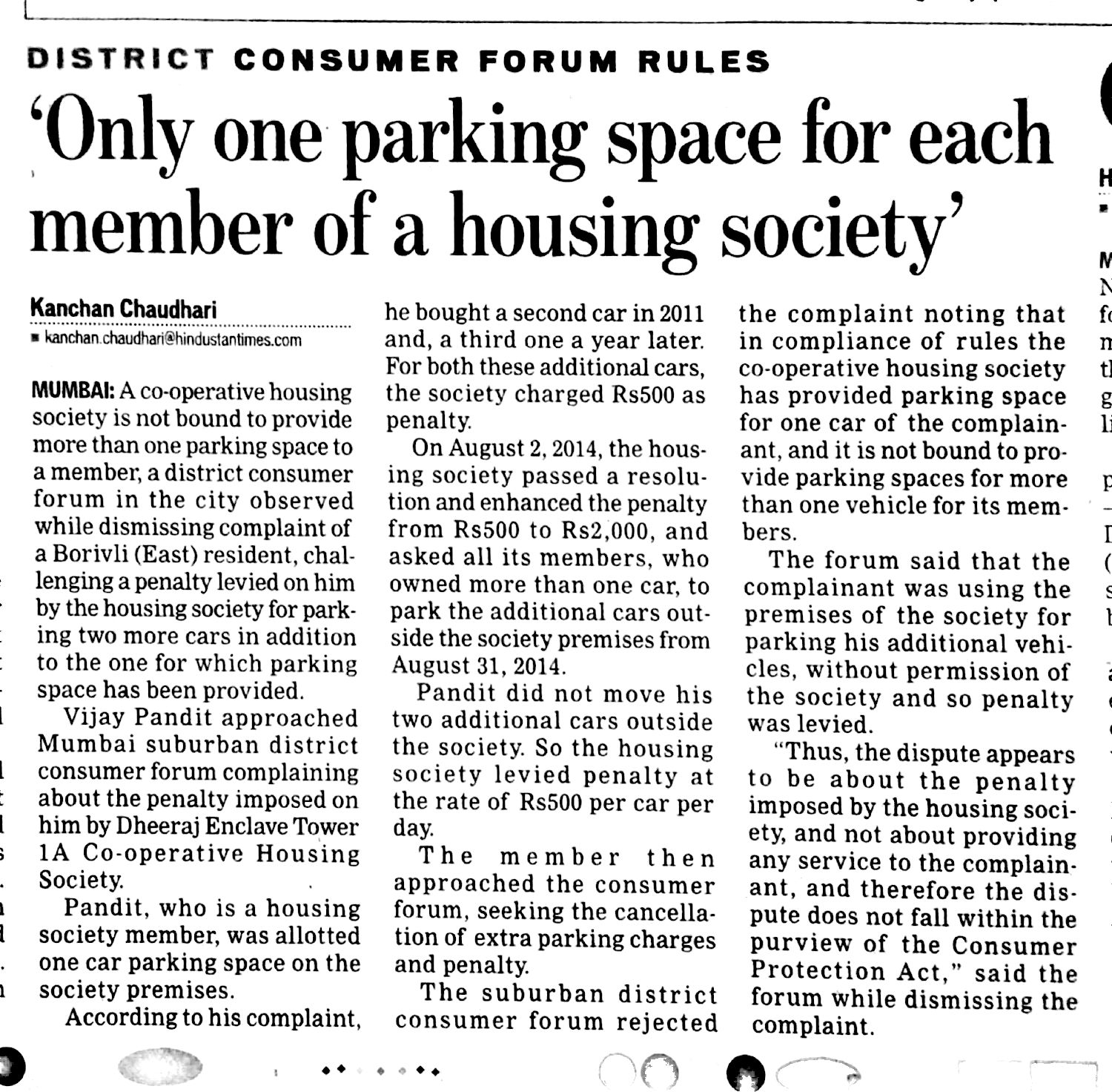 c) The member who parks his vehicle with the permission of the MC and pays Parking charges, can file Civil Cases, Criminal Cases and Consumer Court cases, against the CHS, for any “Negligence & Deficiency” in parking facility, vehicle damages etc….