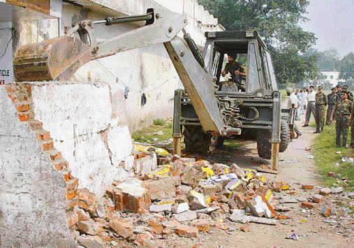 For reporting illegal constructions and encroachment in Mumbai file you complaint at http://removalofencroachment.mcgm.gov.in You can also monitor action taken.