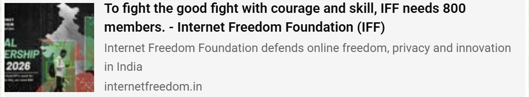 Annual Membership Drive (AMD) : https://internetfreedom.in/to-fight-the-good-fight-with-courage-and-skill-iff-needs-800-members/