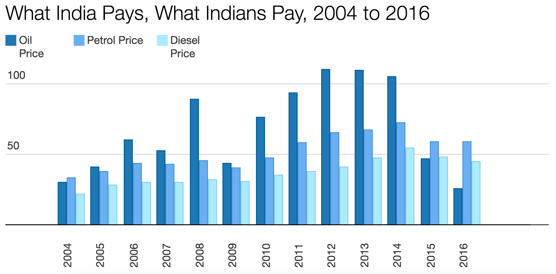 Although India imports more than 80% of its fuel requirement, which means declining global prices should, theoretically, have seen sharp declines in retail petrol and diesel prices, Indian consumers of petrol and diesel now pay about double the global rate.